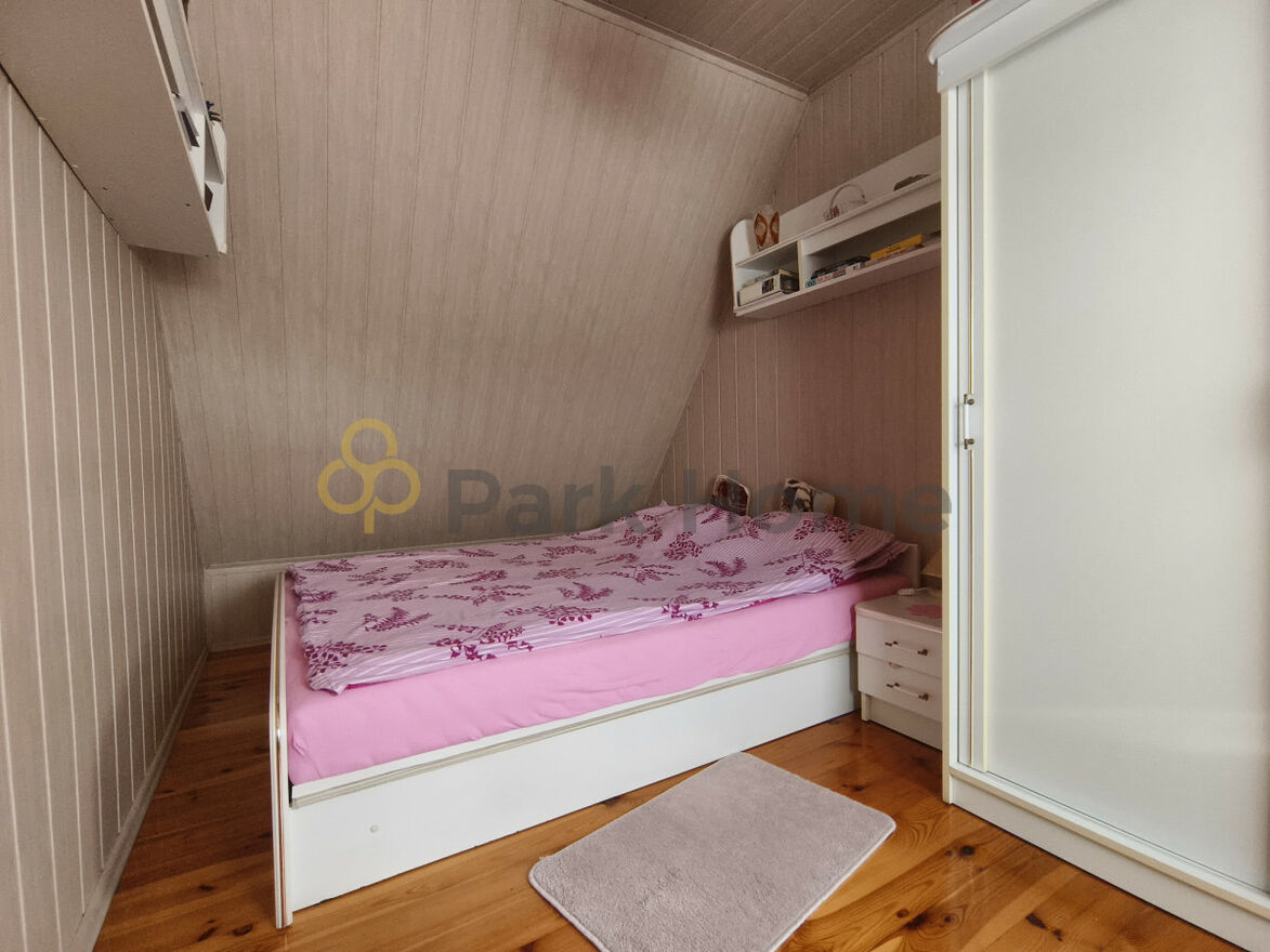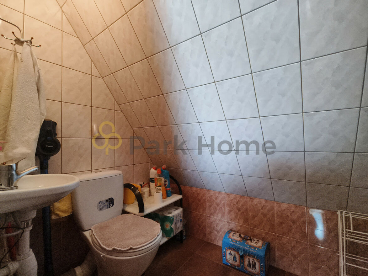 Na poddaszu znajdują się pokój, sypialnia i łazienka. Podłoga wykonana z desek drewnianych. Cały wystrój zachowuje spójny, klimatyczny charakter.
